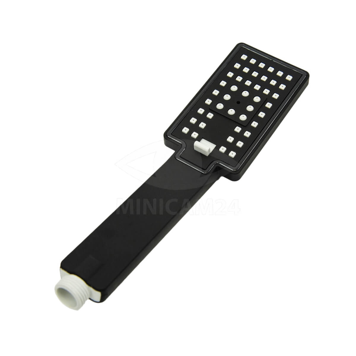 Душевой комплект с тропическим душем Quadro черный матовый предназначен для ванной или для душевой кабины в квартире или частном доме. Система тропический душ монтируется на стену и выглядит как металлическая стойка с матовым покрытием, оснащенная небольшим пластиковым контейнером для шампуней, мыла, мочалки и других предметов. Высота лейки достигает 225 мм. Верхний душ имеет квадратную форму и оснащен регулятором струи в трех режимах, при которых вода распыляется по-разному. Смеситель с изливом поворотным управляется рычажным способом. В комплект входят душевая система, штанга, пластиковая емкость и крепежные элементы.